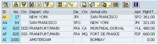 The problem: SAP® has provided us with some demo programs on ALV. We would use one of them in our scenario. BCALV_GRID_DEMO is the demo program provided by SAP® for ALV Grid Control. When you execute the program in foreground, you get the similar following output: