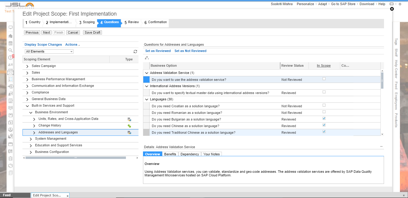 Business Configuration --> Implementation Project --> Edit Project Scope