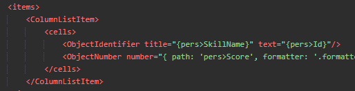 This requires me to change the bindings in the detail view with the named JSON model. It also impacts the association to the skills of the person, it requires “results” behind it: