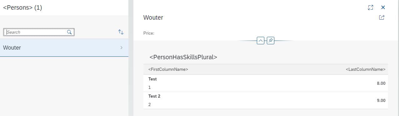 I’m using an odata service for this that contains two entities (Person and Skill) with a one to many relation. This model can have multiple persons and each person can have zero,, one or more skills. Here you have all the details to create your own service for following the steps.
