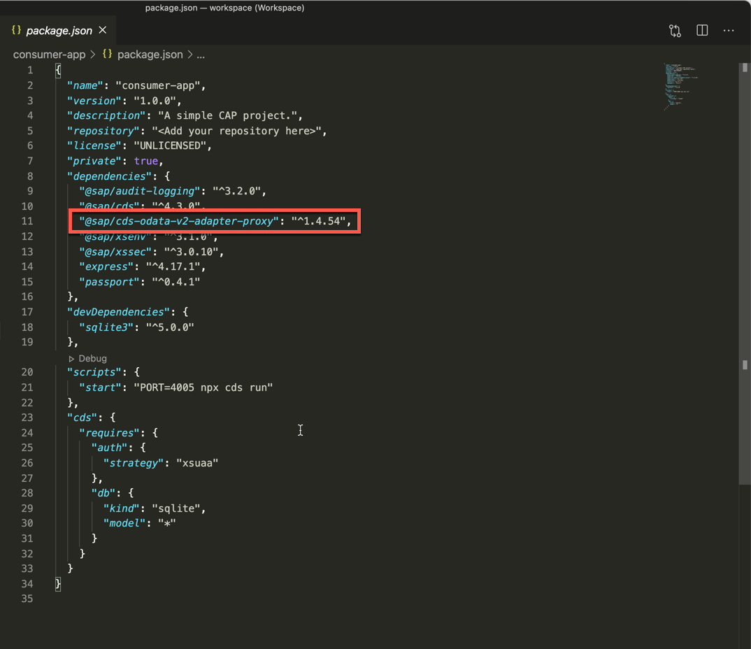 The OData V2 Adapter Proxy can be simply included in your CAP application via npm package and just through a couple of lines of code you get the proxy installed and ready to be consumed.