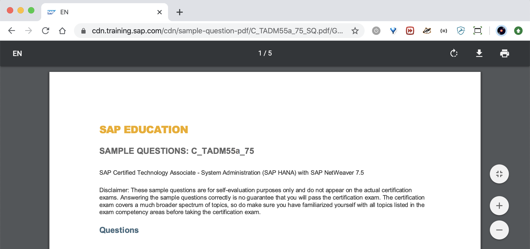 - SAP recommends combining education courses and hands-on experience to prepare for your certification exam as questions will test your ability to apply the knowledge you have gained in training.