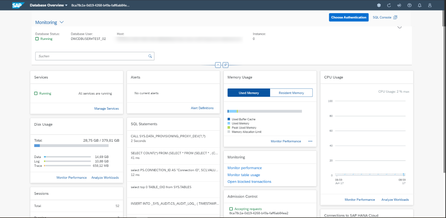 Good news for administrators: To monitor resource consumption, such as your database's memory or CPU consumption, you can make SAP HANA monitoring views available in a space. You can also now connect to SAP HANA Cockpit to perform advanced analysis and monitoring.